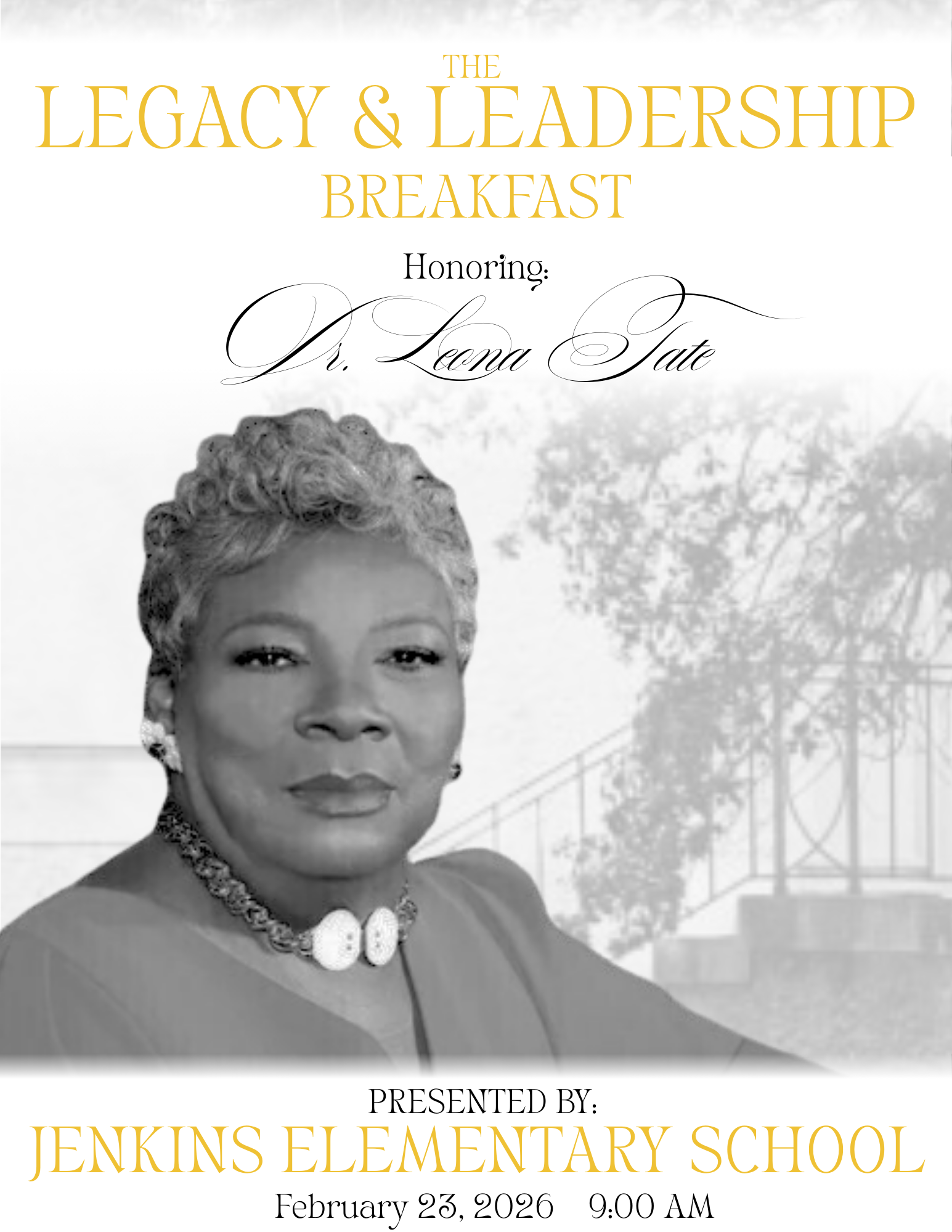 The Legacy & Leadership Breakfast will honor Dr. Leona Tate and celebrate 65 Jenkins Elementary School students who embody leadership, perseverance, and academic excellence.